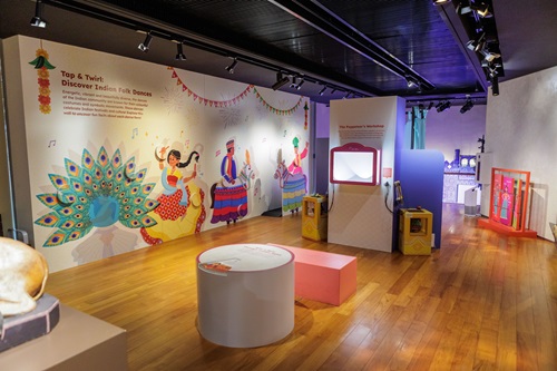Step into Play on Level 4 of our Permanent Galleries, where kids can experience the magic of Indian culture through storytelling at the Shadow Puppets corner, spin the Story Wheel to learn about epics and festivals, and explore folk dances like Bhangra and Mayilaattam with interactive flip panels. Inspired by IHC’s permanent collection, these features bring puppets, Poikkaal Kuthirai, and festival traditions to life. Little visitors can even strike a pose as a Mayilaattam or Poikkaal Kuthirai dancer!